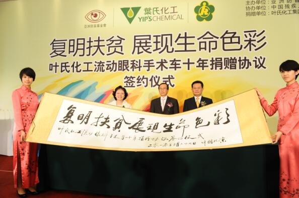据悉,叶氏化工早在2009年便与亚洲防盲基金会和中国残疾人联合会合作,透过捐赠多架配备先进眼科手术仪器价值约250万港元。目前,叶氏化工已向江苏、山东、内蒙古、云南、黑龙江、山西、湖南、河北及贵州捐赠九部流动眼科手术车,捐赠金额总值超过港币2200万元。