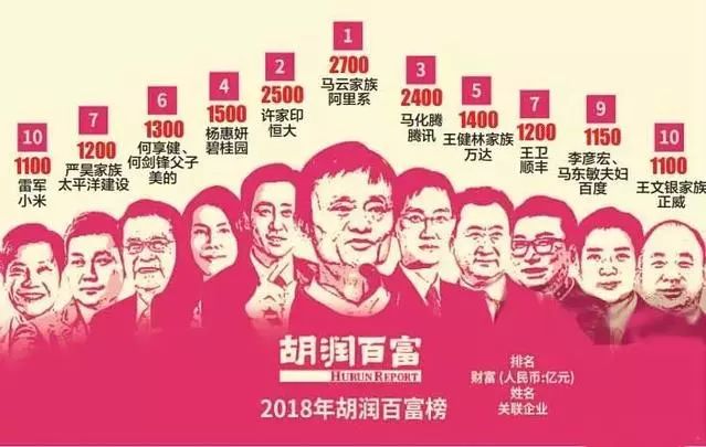 根据榜单,马云以2700亿时隔四年再次成为中国首富;许家印和马化腾以2500亿和2400亿位列二三。