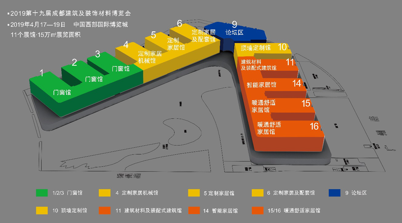 2019第十九届成都建博会移师中国西部国际博览城,展会规模由10万O扩增至15万O,上届参展老客户所定参展面积都呈现大面积整长,切实解决了企业参展展位面积受限问题,届时参展商将携旗下更多新品精彩亮相;