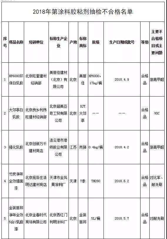 涂料经讯 9月25日,北京市工商局公示流通领域涂料胶粘剂商品质量抽检结果。