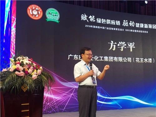 总冠名花王水漆董事长方学平致辞时表示,花王水漆具有不脱层、防霉菌、不开裂等优点,花王愿意和所有木门企业一起完成油改水的使命。