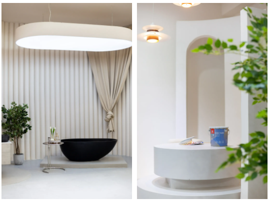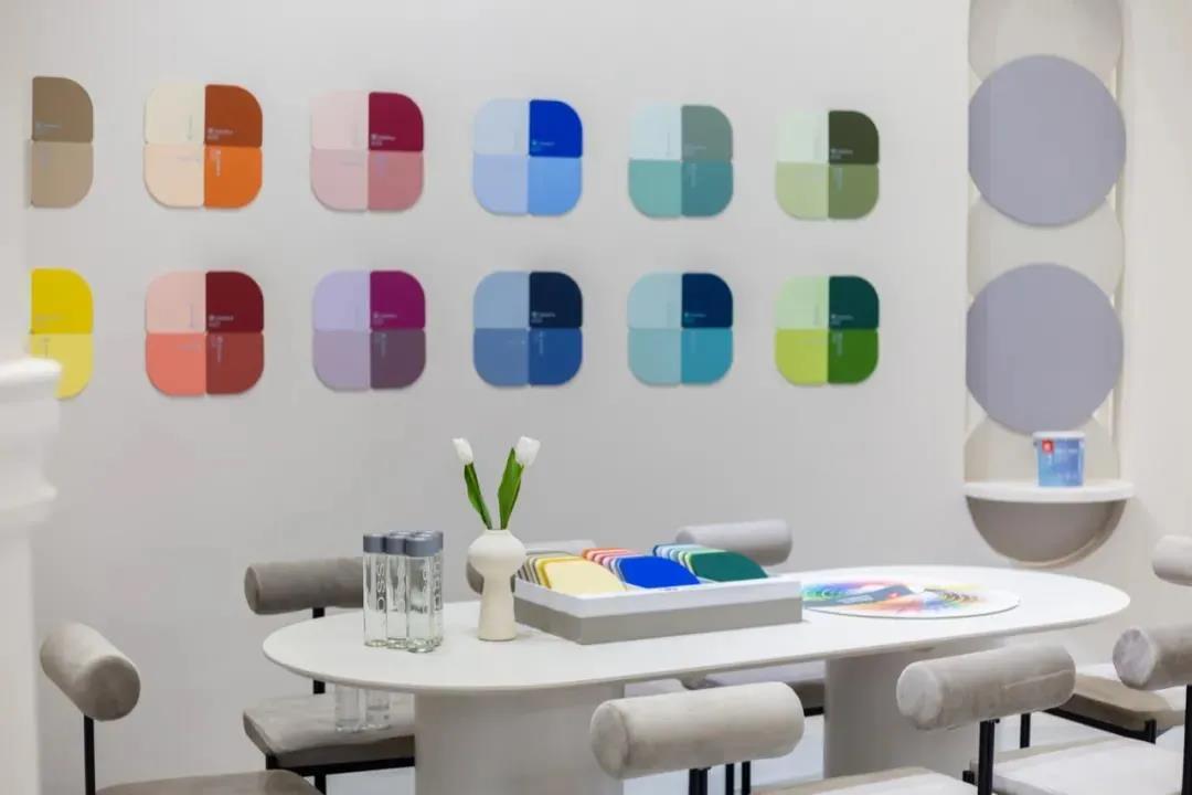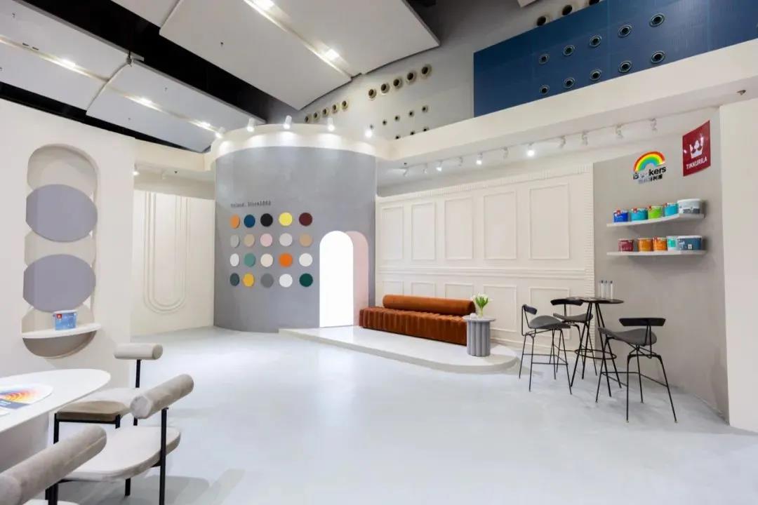 芬琳漆在今年推出的全新调色系统Innovatint的进一步推动下,可精准调配出超过13000种源自大自然缤纷色彩、使用原装进口趋零VOC色浆的芬琳漆已在行业内建立了一定的色彩表现力优势。因此在细节上,芬琳漆展馆充分发挥了这一特色。精准的0色差色彩为房间内的设计和搭配提供了更多发挥的空间和可能性。