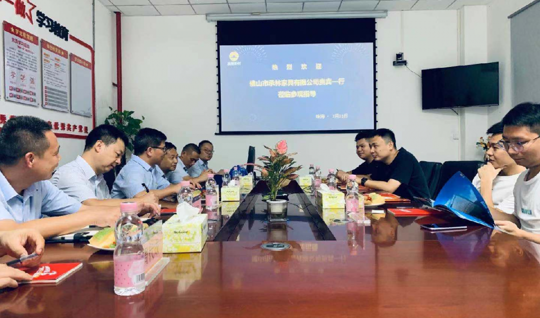 7月21日,佛山市承林家具有限公司(林氏木业总部)采购、供应、产品设计、技术研发团队到展辰新材珠海工厂参观交流。