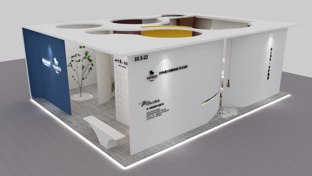 据悉,2021年是帝卡斯成立以来的第十年,今年对帝卡斯而言,不言而喻。借此感悟和灵感,帝卡斯以“心十年·新非凡”为主题,带来了全新设计和产品。展厅以“微水泥”为主要设计元素,搭配了轻奢、极简等风格,同时把新品及意大利原装进口艺术涂料VENETO威尼托(意大利)带到了展会。抢先一步,让更多用户和观展商了解艺术涂料,并深入勘察艺术涂料的精湛工艺。而且设计围绕沉浸式体验场景化搭建,每一款产品都“可视化”,融入进每一个空间中,更形象,可以近距离了解帝卡斯。