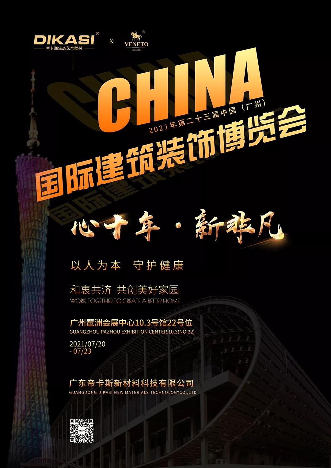 2021中国建博会(广州)将于7月20日-23日举行,帝卡斯展位号: