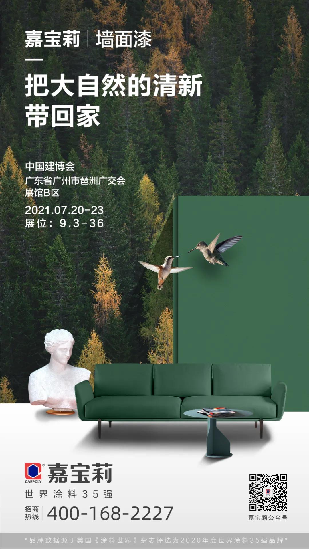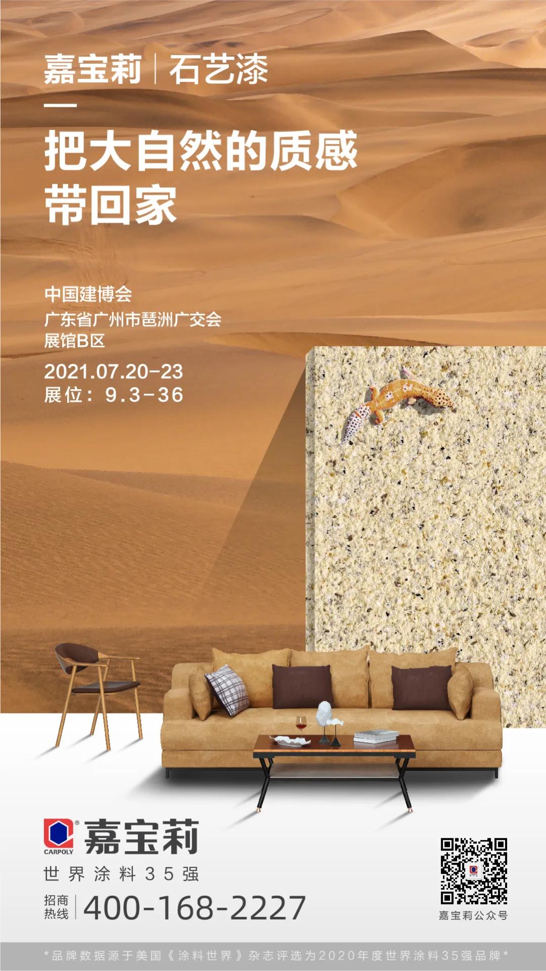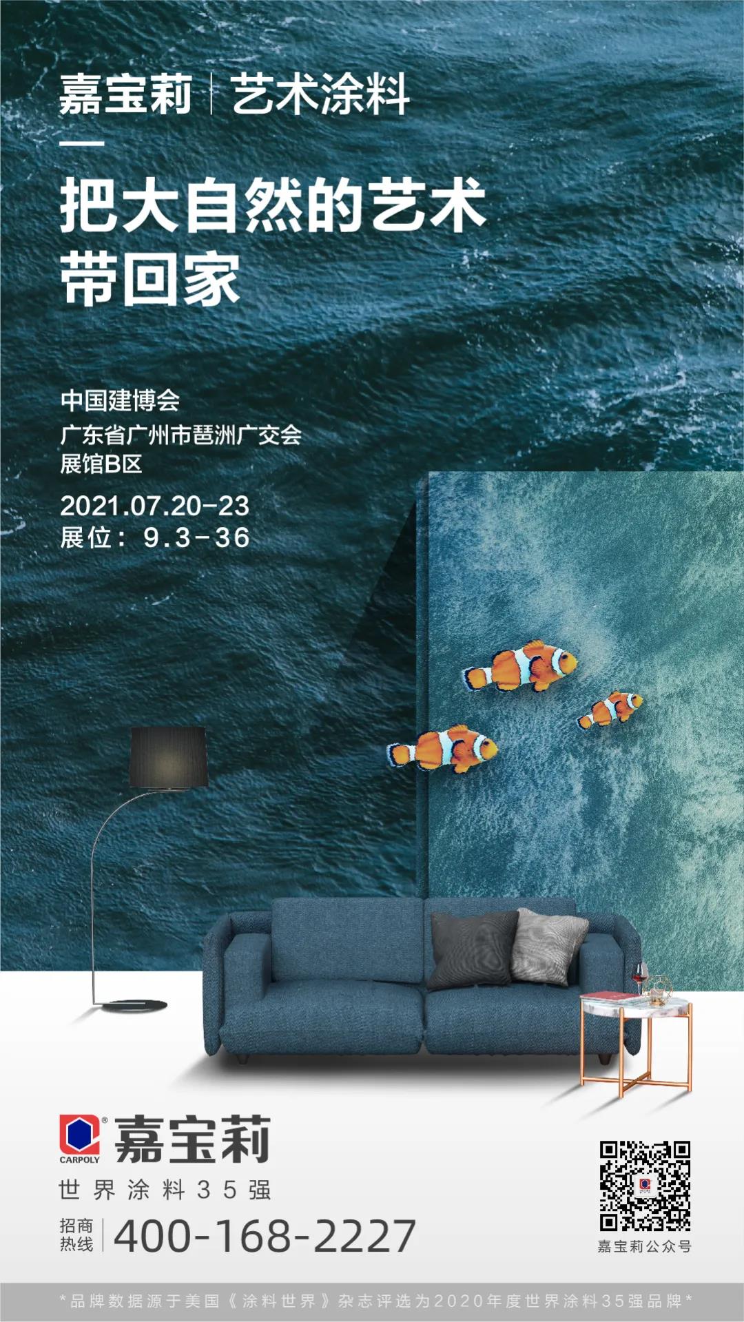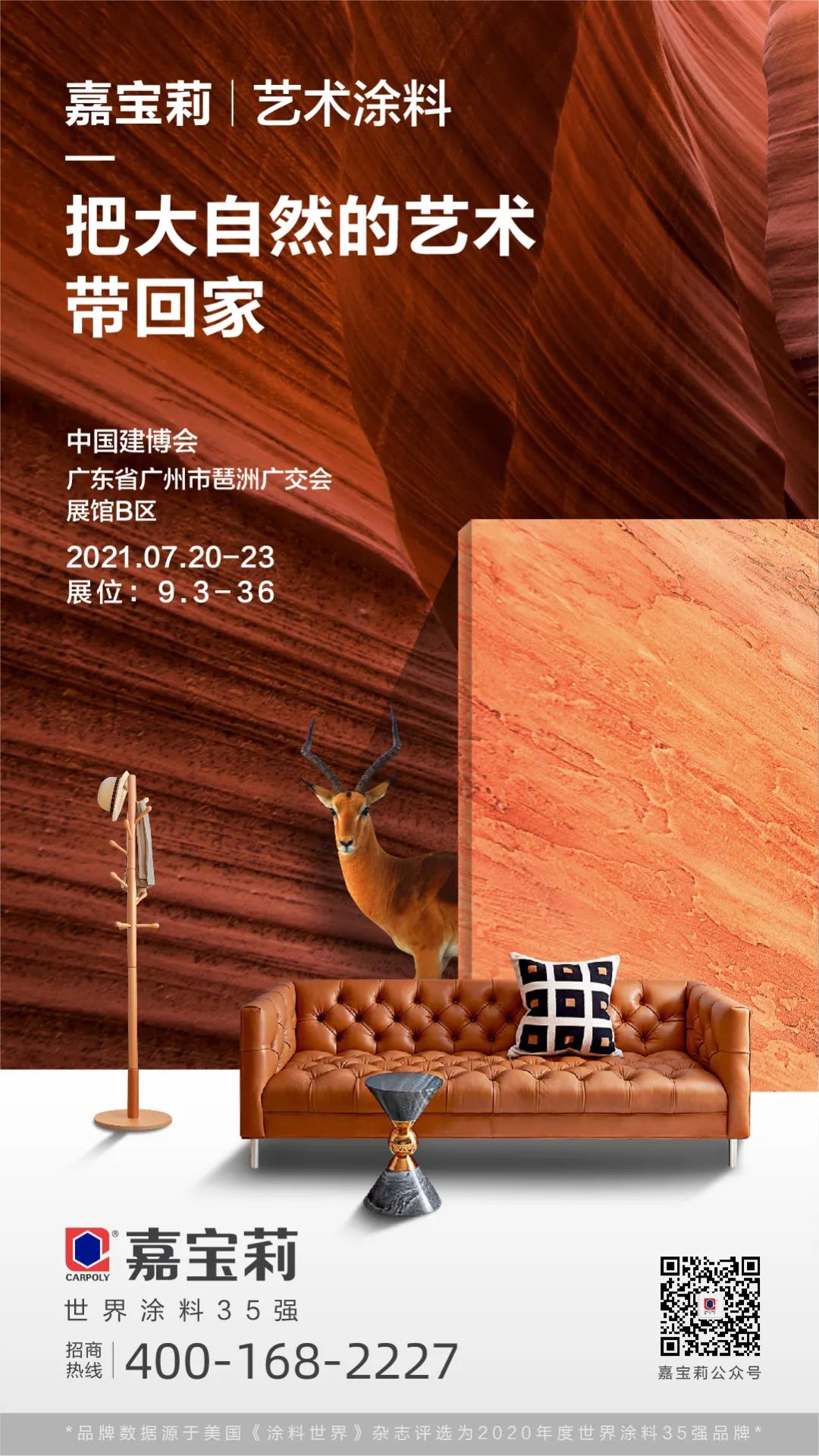 7月20日-23日,善于探索各种符合现代中国人生活方式的嘉宝莉,将在一年一度的广州建博会上带来“把大自然的艺术带回家”的主题展览。