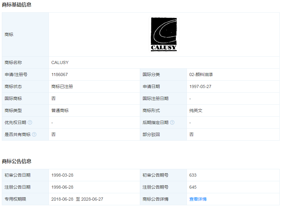 7月13日,北京法院审判信息网公布了统艺与国家知识产权局其他一审行政判决书显示,统艺表示其2017年申请号为22489648“图形”商标(诉争商标)与美涂士1997年申请号为1186067“CALUSY”商标(引证商标)属于同一种或类似商品上的近似商标,因此想法院对美涂士商标予以无效宣告。