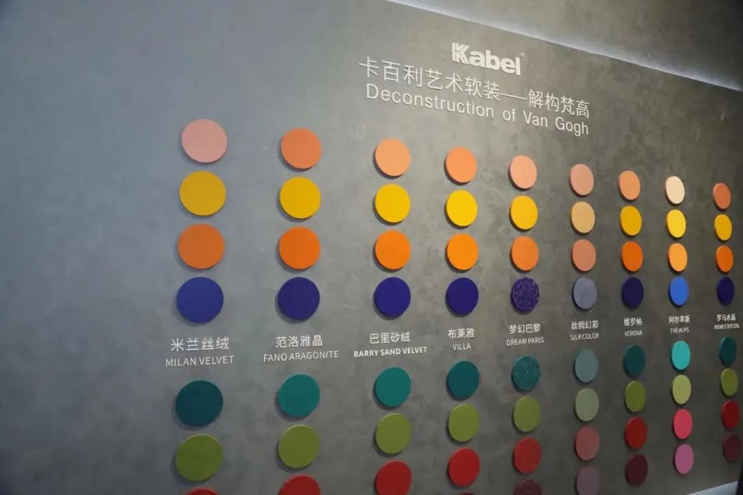 随着发布会告一段落,卡百利现场迎来了展览人数的“小高峰”。众多参展嘉宾、与会嘉宾被发布的私彩系列所吸引,进入意大利卡百利艺术涂料软装馆参观,近距离感受梵高的作品和主题家居空间,了解卡百利的21大产品系列,亲身体验一场特别的梵高色彩之旅。
