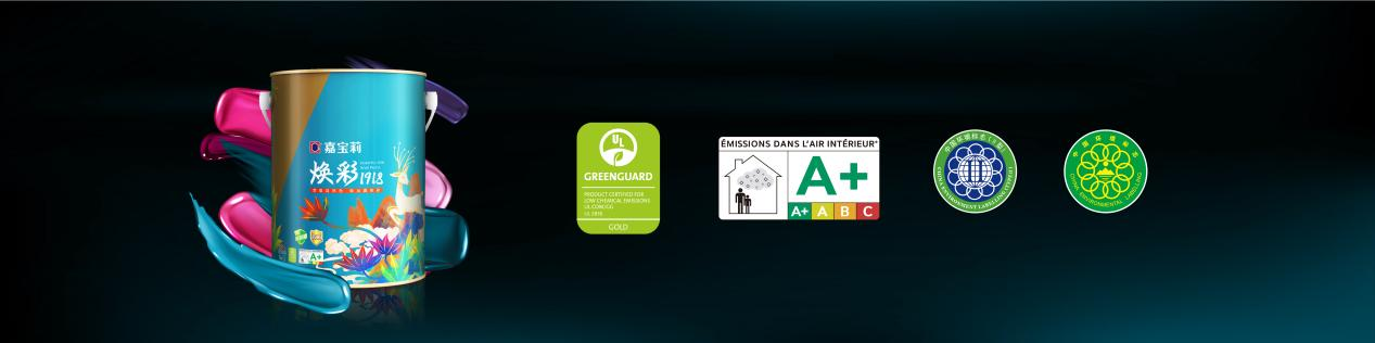 嘉宝莉焕彩1918净味专业调色墙面漆甄选环保、优质的原材料并采用先进的技术工艺生产而成,不人为添加VOC、甲醛、苯、重金属等有毒有害物质,并通过了美国UL GREENGUARD室内空气质量金级认证和法国室内环境空气检测A+标准,更环保安全。
