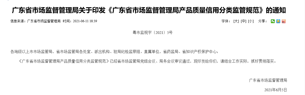 事实上,广东省市场监管局从2019年起试行对监督抽查不合格产品实施失信记分措施,并在部分地市开展分类监管试点工作。