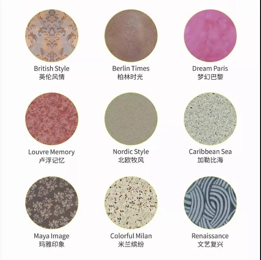 随后,德国菲玛又以色彩丰富的贝壳彩片系列引领起了一股彩片风潮,一时间全国跟风效仿贝壳片(粉)的种类涂料立刻盛行起来。如今Z时代来临,消费主力军逐渐年轻化,从奢华隆重,到简约而不单调,德国菲玛立刻感受到了市场风向的变化,陆续推出了纯色的适用型产品、仿布纹效果艺术涂料等爆款新品,目前德国菲玛是国内品种样式最丰富的艺术涂料品牌。