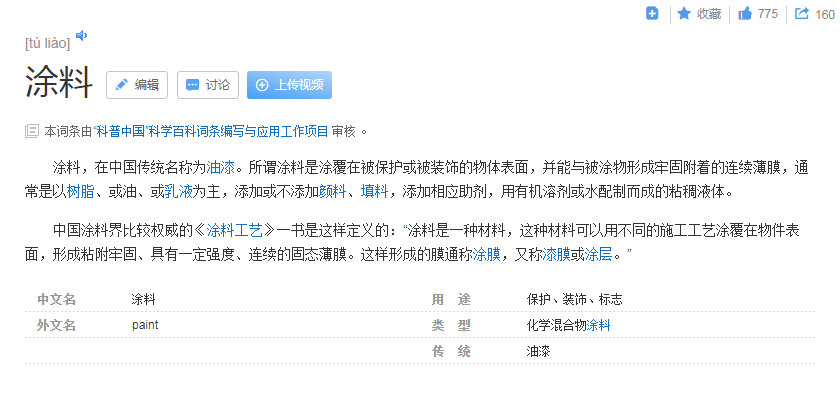 在百度百科上关于“涂料”的解析