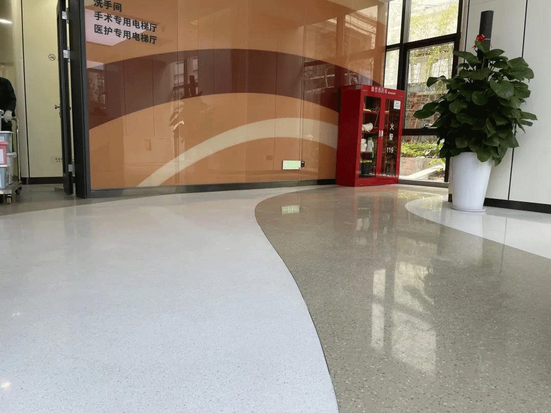 环氧磨石、弹性聚氨酯自流平:应用于医院大堂、急诊大厅、接待大厅等区域。