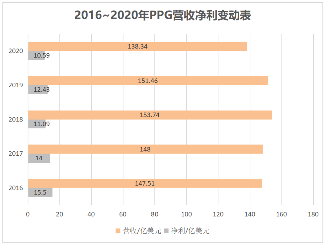 《涂料经》记者还收集了近5年(2016年~2020年)涂料行业全球营收和净利前5强的变动数据。