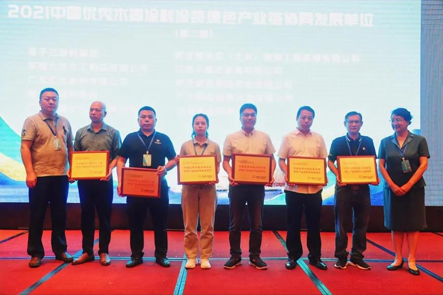 研讨会现场,重点对“2021中国优秀木器涂料涂装绿色产业链协同发展单位”进行了表彰与联合授牌。