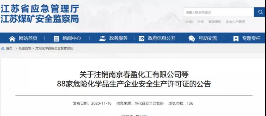 而在去年(2020年)11月,江苏省应急管理厅也注销了88家危险化学品生产企业安全生产许可证,其中包括江阴市登峰电工材料有限公司、无锡市金箭造漆有限公司、无锡银星涂层板有限公司等21家涂料企业。