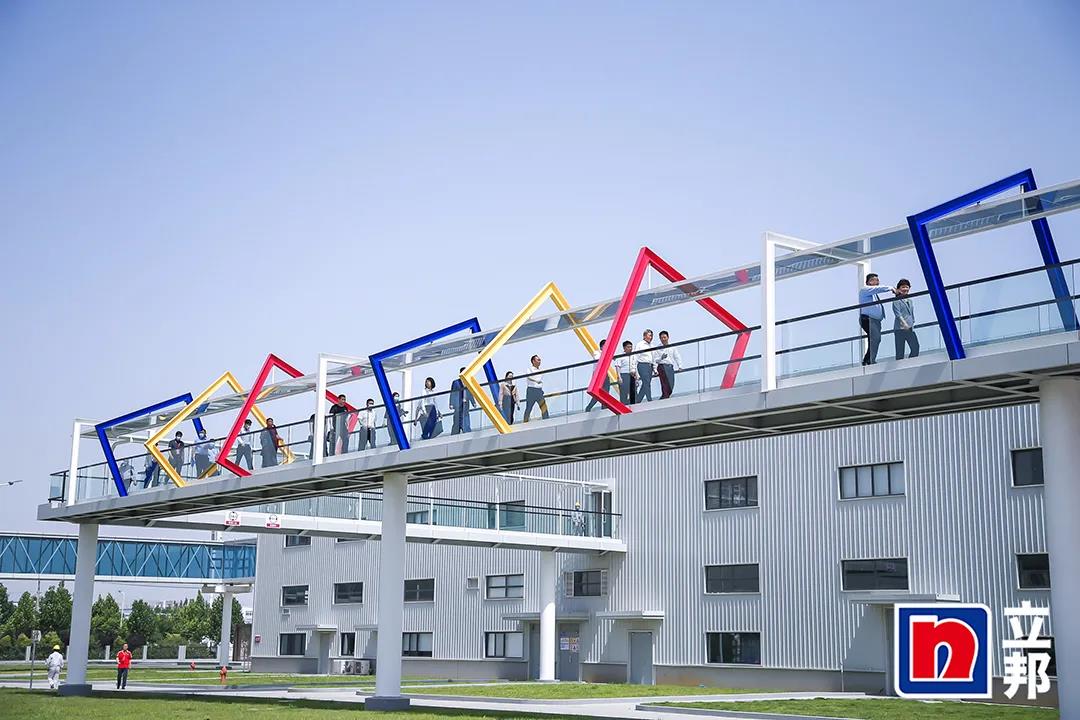 参加开业仪式的嘉宾通过空中连廊参观立邦长润发河南兰考工厂