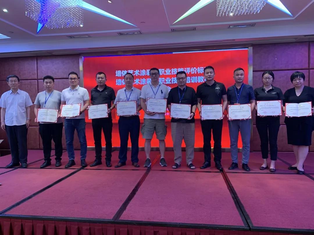 现场还聘任罗威、项尚林为墙体艺术涂装师职业技能评价标准和墙体艺术涂装师职业技能培训教材编写委员会主任委员,并向墙体艺术涂装师职业技能评价标准和墙体艺术涂装师职业技能培训教材主要编写单位及编写单位颁发荣誉证书。