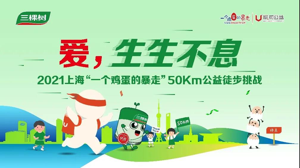2021“一个鸡蛋的暴走”公益徒步活动于5月15日在上海浦东举行。三棵树50名员工志愿者及合作伙伴组建10支小森暴走队,带着“爱,生生不息”的信念踏上这场征程,为需要帮助的孩子们捐款,让他们遇见更多美好。