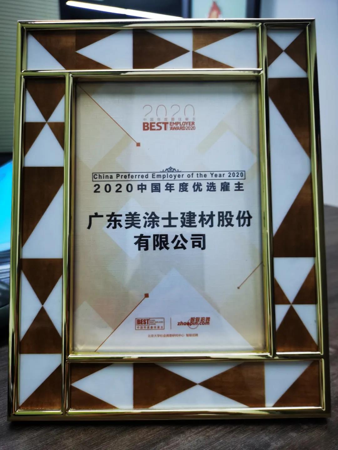 《涂料经》最近获悉,在由智联招聘主办的2020中国年度雇主评选活动上,作为涂料行业的标杆企业,美涂士以独特的“内生力量”斩获奖项,荣膺"2020中国年度优选雇主"。