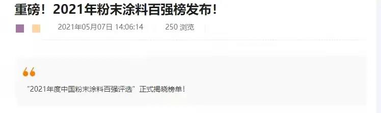 粉末涂料原本同艺术涂料一样,也只是一个涂料行业的细分领域。能拥有属于自己的榜单,足以证明开始受到整个行业的关注与重视。