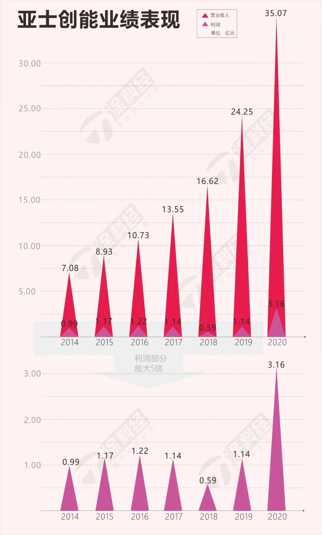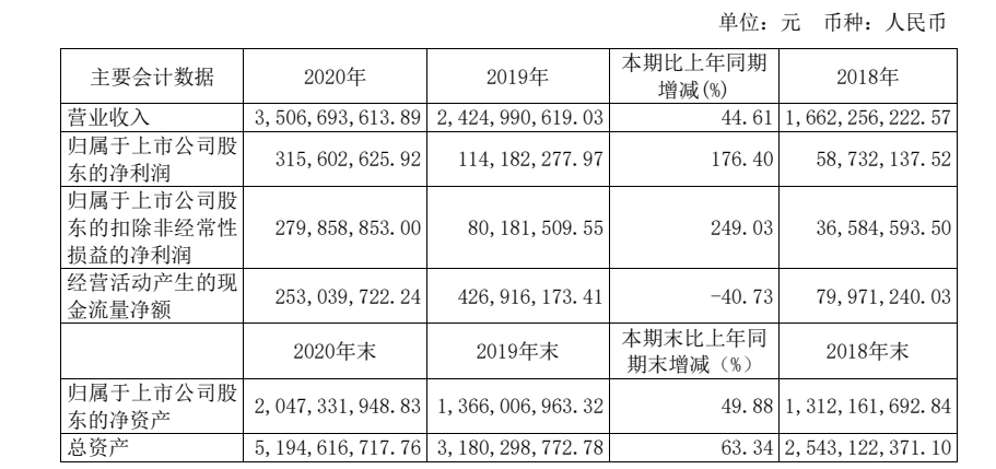 4月28日,亚士创能所发布的2020年度报告显示,报告期内营业收入35.07亿元,同比增长44.61%;归属于上市公司股东的净利润3.16亿元,同比增长176.40%。其中功能型建筑涂料收入23.11亿元,同比增长33.65%,保温装饰一体化材料收入4.67亿元,同比增长31.72%,保温材料收入5.58亿元,同比增长120.90%