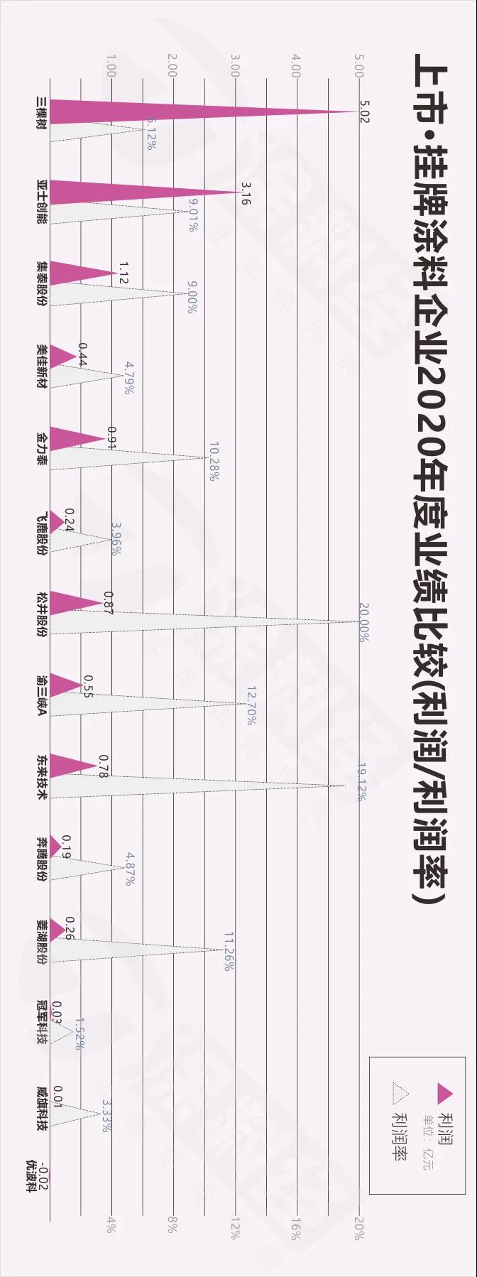 “上市挂牌涂料企业2020年度业绩比较-利润及利润率”图表(请横屏查看):