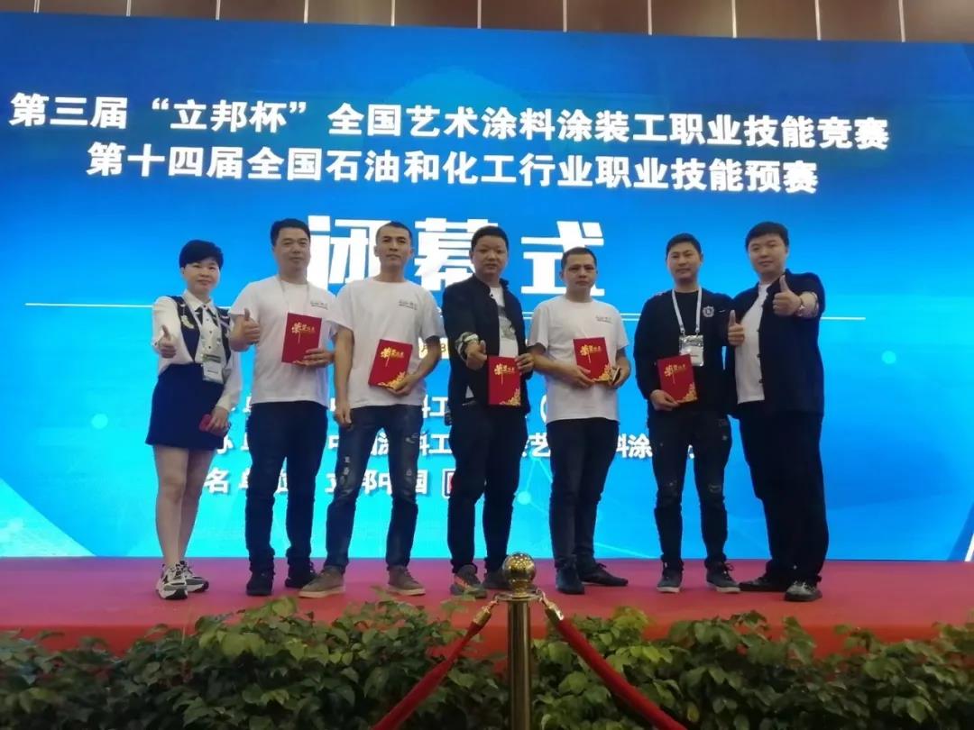 慕舍庄仁义(右)以总分第一的成绩摘得“立邦杯”全国艺术涂料涂装工职业技能竞赛冠军