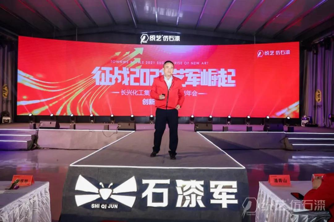 长兴集团执行董事潘奎山为本次年会致辞,感恩所有经销商及漆匠、家人们在奋战中彰显不同凡响的统艺力量!他表示:直面伟大祖国十四五规划新图景,仿石涂料行业迎来全新的发展机遇。拥抱乡村振兴和亿万基建,大家与祖国和产业共荣耀,会上他勉励所有人“一群人,一条心,一件事,一起干,一定赢”!