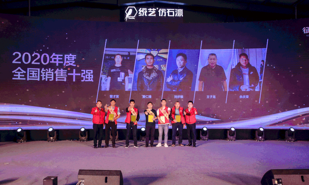 直面外墙装饰市场升级和变革,长兴人前进、突围、奋战……他们奋力挺起仿石涂料产业的脊梁!年会举办2020年度匠心榜暨优秀经销商颁奖盛典,授予他们莫大的光荣和崇高的敬意。