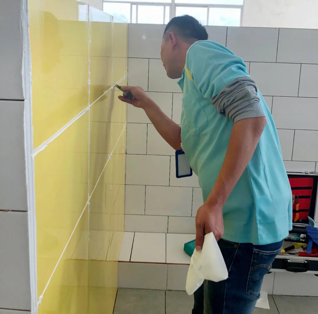 现场还学习了新一代美缝产品天冬聚脲美缝剂的施工操作,看似简单的压缝、擦洗,但是想要做好,就要精准把握压缝角度、力度,擦洗时间等。特别是针对天冬聚脲美缝阴阳角的施工,更是对技术和经验的双重考验。