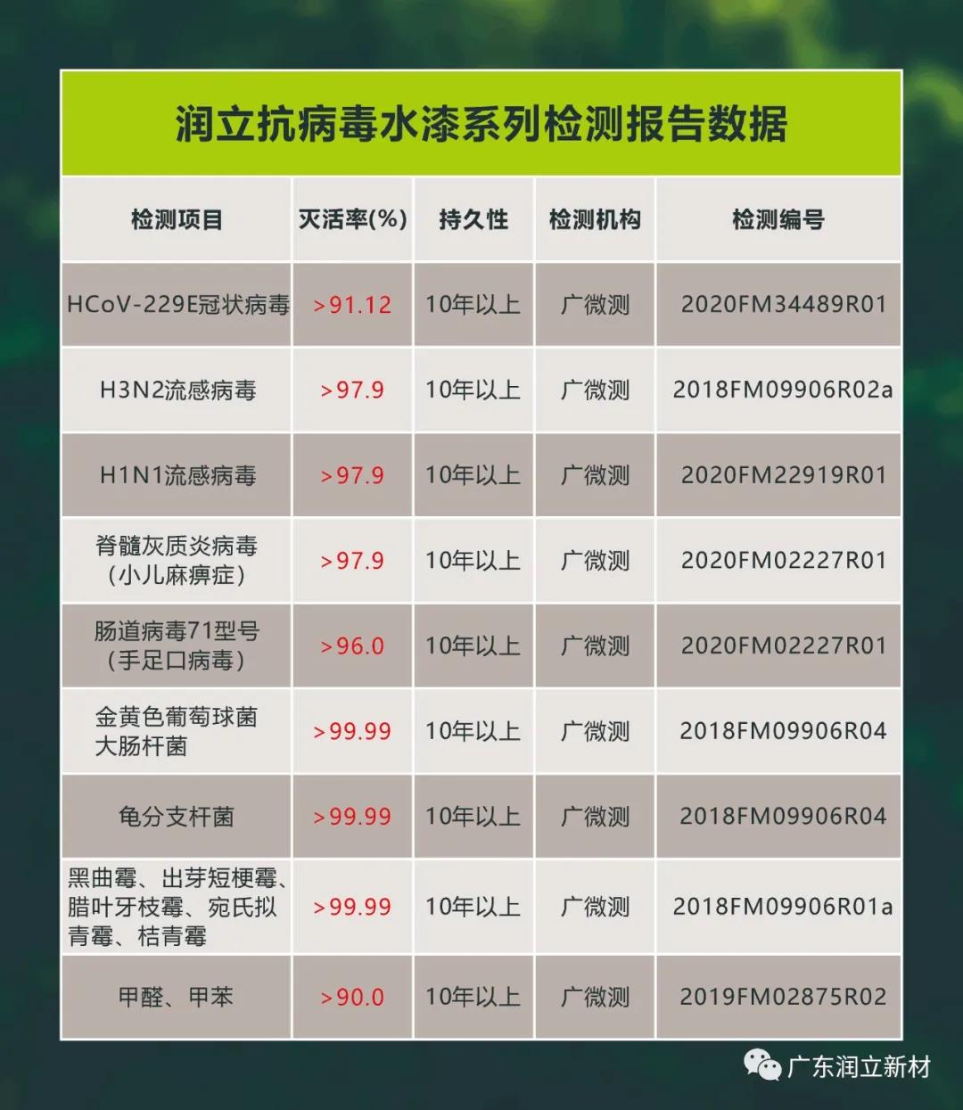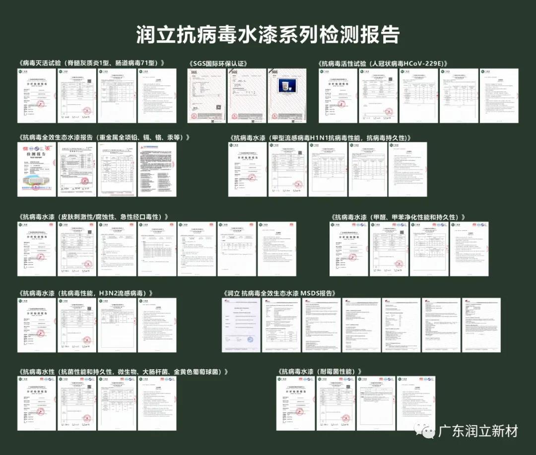 润立抗病毒水漆系列检测报告汇总