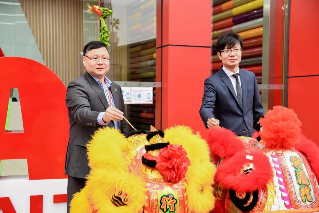艾仕得中国区总裁汽车修补漆亚太区总监李骏(左)、艾仕得汽车修补漆中国区业务总监费宇东(右)为舞狮仪式点睛