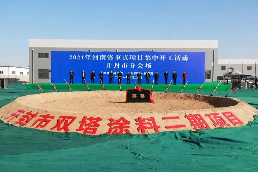 2月20日,河南省重点项目集中开工开封市分会场活动举行总投资597.9亿元的163个项目集中开工建设。其中,湘江涂料集团开封生产基地即将投产,二期项目正式开建