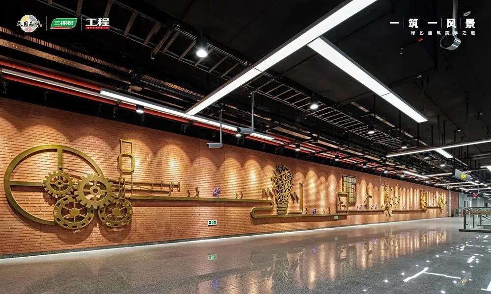 另外,三棵树科创艺石高端系列产品——仿清水混凝土涂料——被用于地铁站出入口作为“门面担当”。该产品选用特种水泥搭配天然骨料和无机粘土,低调的外观和清冷的质感赋予建筑独特的装饰美感,极具后现代工业风。