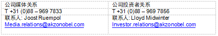 本新闻稿载有阿克苏诺贝尔公司增长战略、未来财务结果、市场地位、产品开发、正在研发的产品及产品认证等关键事项之声明。读者需认真辨析该等声明,并且应当理解:诸多因素皆可能导致预测结果和实际结果与该等声明出现不符。这些因素包括但不限于:价格波动、汇率波动、原材料和人员成本增加、养老金、物理和环境风险、法律问题以及立法、财政和其他监管当局措施。本文载列的竞争能力是管理层根据专门外部机构提供的信息估算得出。欲了解影响我司业务风险因素的全面信息,请通过我们的网站www.akzonobel.com 参阅我们的最新年度报告副本。
