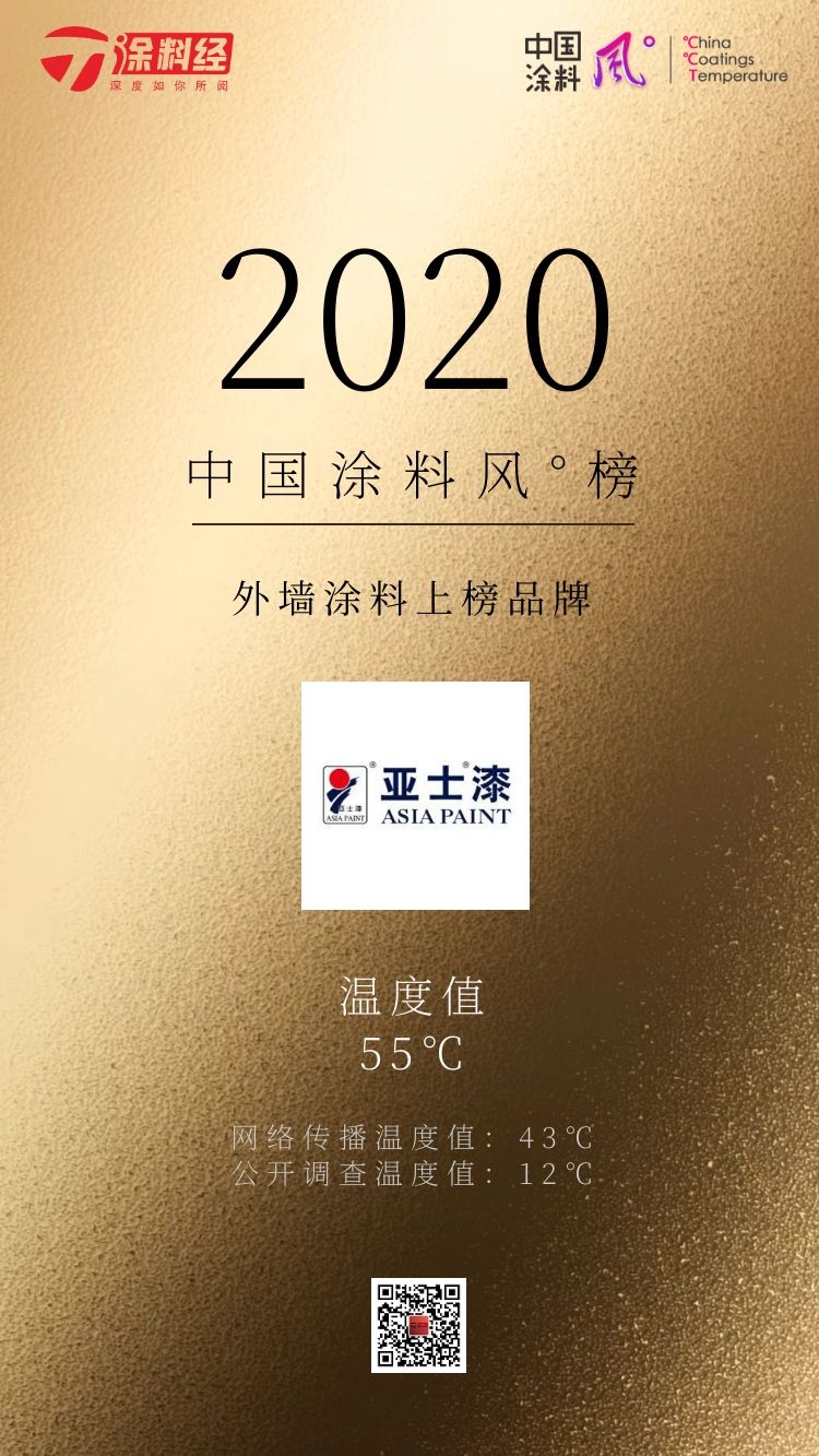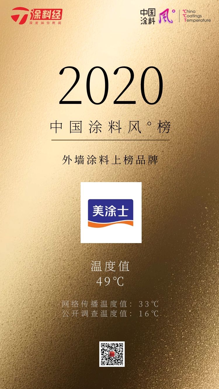 2020中国涂料“风°”榜按照子榜单分别发布,以下为“外墙涂料”子榜单的上榜品牌名单。其它子榜单参见《涂料经》同日所发对应内容。