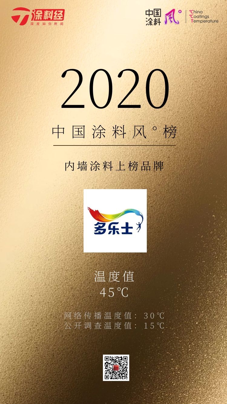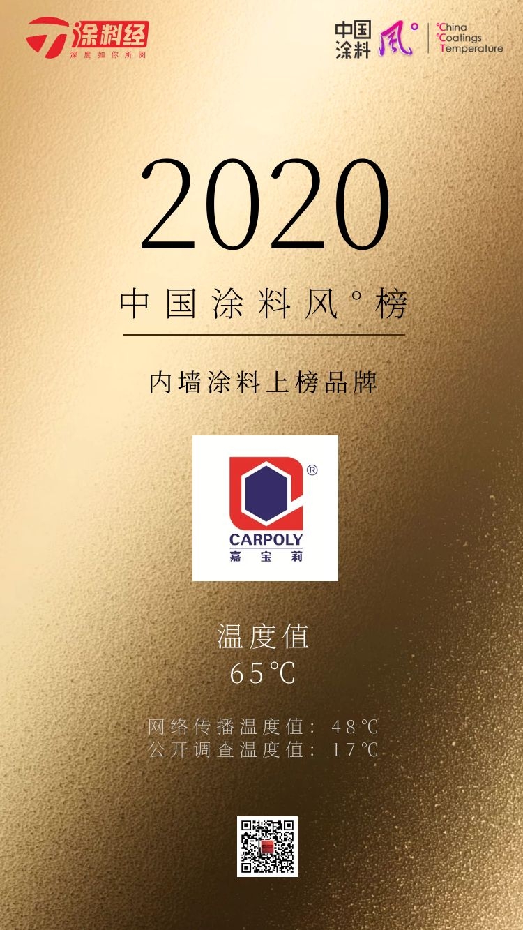 2020中国涂料“风°”榜按照子榜单分别发布,以下为“内墙涂料”子榜单的上榜品牌名单。其它子榜单参见《涂料经》同日所发对应内容。