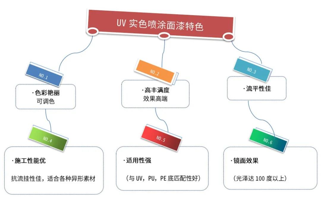 大宝UV全亮实色喷涂面漆具有色彩艳丽、高丰满度、流平性佳、施工性能佳、适用性强、镜面效果的特点,适用于橱柜、板式家具、酒店家具等领域。