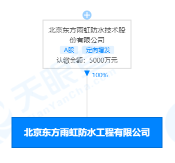 公开资料显示,北京东方雨虹防水工程有限公司成立于2000年11月1日,是A股北京东方雨虹防水技术股份有限公司全资子公司,经营范围为:专业承包;销售建筑材料、装饰材料、机械设备;技术开发、技术服务;货物进出口、代理进出口、技术进出口。