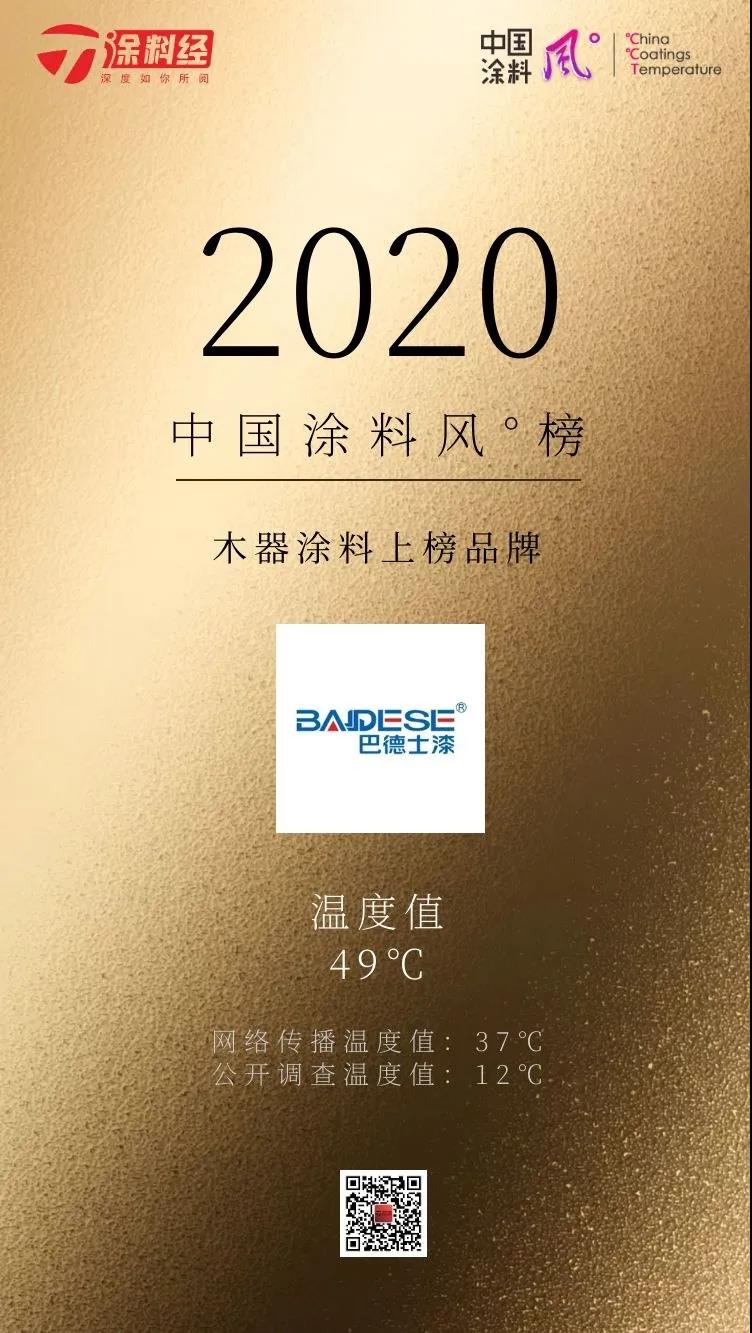 2020中国涂料“风°”榜按照子榜单分别发布,以下为“木器涂料”子榜单的上榜品牌名单。其它子榜单参见《涂料经》同日所发对应内容。