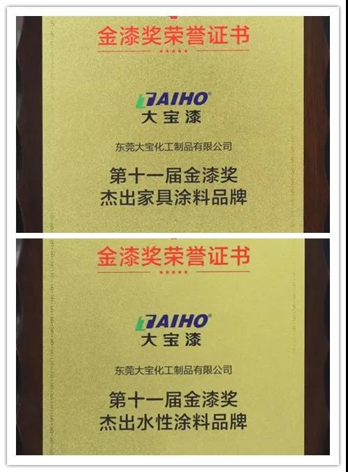 第十一届金漆奖颁奖盛典上,大宝漆一举斩获“杰出家具涂料品牌”、“杰出水性涂料品牌”等奖项。