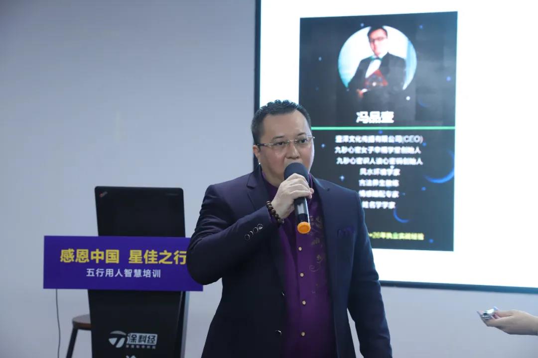 本次讲座的主题为“感恩中国,星佳之行”,顺德站的主讲内容为“五行用人智慧~九秒识人读心术”,由星佳企业管理顾问有限公司主办、壹泽文化传播有限公司协办,壹泽文化传播有限公司(CEO)兼九秒心密识人读心密码创始人冯品壹主讲。