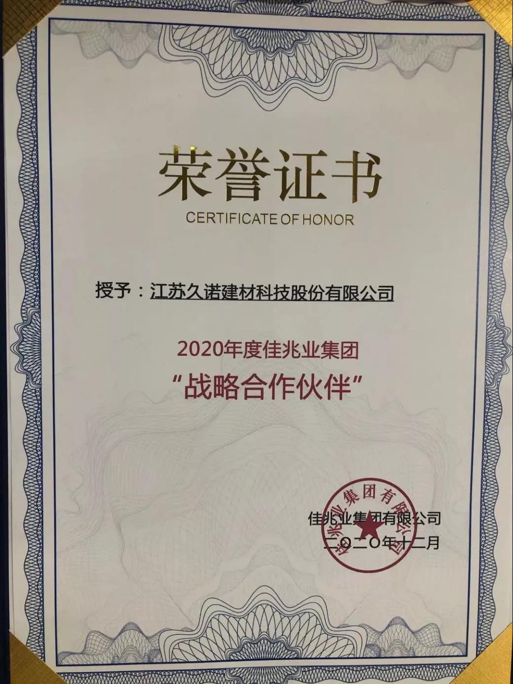 一直以来,佳兆业集团对于联合伙伴的要求极为严格,久诺集团之所以获得佳兆业集团内外墙涂料战略合作伙伴荣誉与认可,并成为佳兆业集团内外墙涂料系列的主力供应商,就是基于久诺集团多年以来,始终秉持“成就客户、成就伙伴、一诺千金、争创一流”的价值观,坚持为客户提供高品质的产品与服务。
