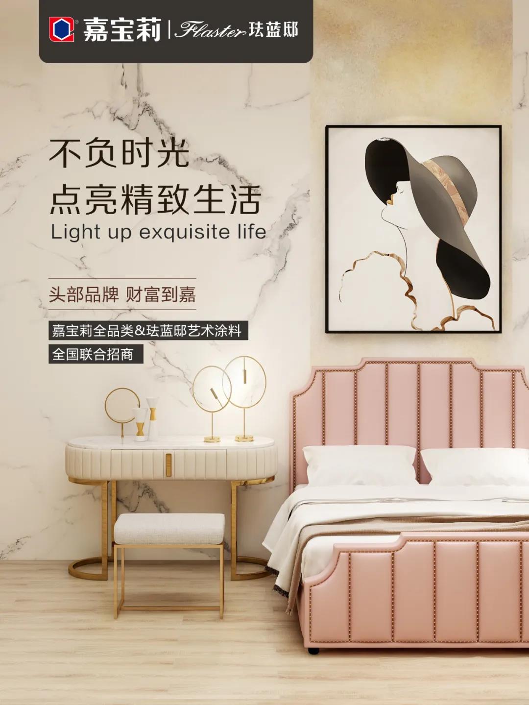 而嘉宝莉作为艺术涂料领跑者,早在2009年,嘉宝莉就推出了极具装饰效果的艺术涂料,并保持在行业的领先位置,2020年再次出发以消费者诉求为出发点,提供艺术涂料+设计+软装搭配全套的方案及产品,实现家装安全、环保、健康以及符合业主品味、独一无二的家居空间,为消费者、房企实现定制化、拎包入住的愿想。