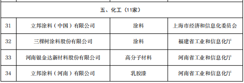其中,化工行业共有11家企业获评,分别是:立邦涂料(中国)有限公司、三棵树涂料股份有限公司、立邦涂料(河南)有限公司、嘉宝莉化工集团股份有限公司等11家企业为第二批工业产品绿色设计示范企业。
