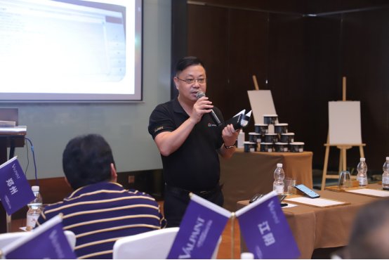 广东广东格式装饰文化股份有限公司技术总监李孝基先生现场为经销商详细讲解了VALPAINT银离子抗菌涂料的产品品类及包装、施工技术要点及色彩系统等内容。