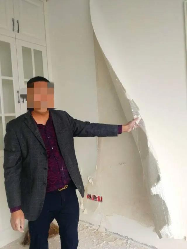8月中旬,即将装修完毕时发现:轻轻一扯夹在石膏中的网格,墙壁上的石膏、腻子唰唰脱落;在墙壁上轻轻一按,还起包鼓泡。叶先生和装修公司估计:问题出在石膏粉、腻子粉上。叶先生随后向广安市场监管部门举报,并向封面新闻《云投诉》栏目投诉。