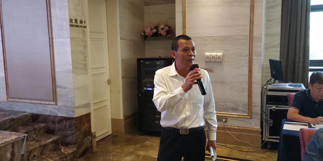 顺德涂料商会荣誉会长胡景钊在理事会上发言