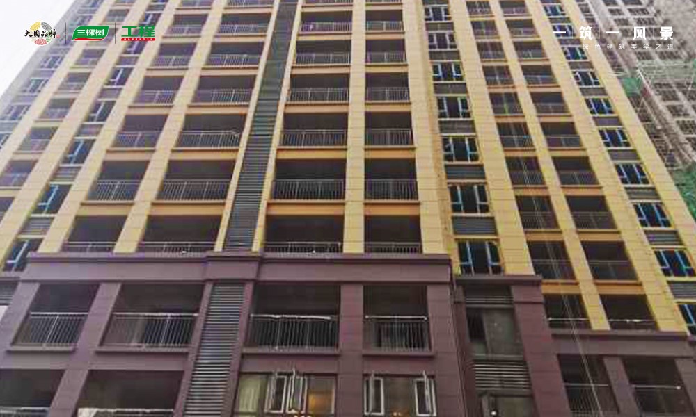 河北唐山昱都豪庭项目、河北张家口富俪左城项目 、福州永德信山庄项目、湖北荆州江陵观澜领秀城项目等项目均有三棵树恒彩石产品加持,以其仿真度高,耐污性能好的产品特性和使用效果让建筑焕发靓丽色泽。